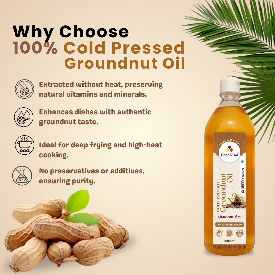 CocoGlow Cold-Pressed Groundnut Oil is a premium-quality oil, extracted using traditional